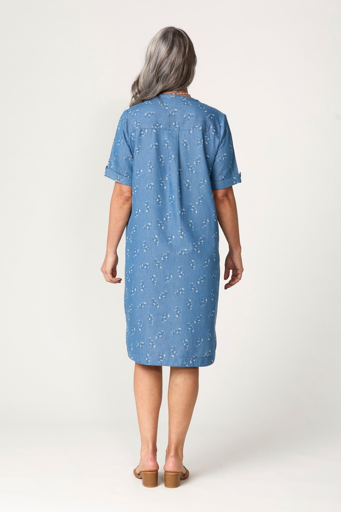 Step into effortless ease with the Avignon S/S Relaxed Dress in Chambray. Crafted from a soft, lightweight fabrication, this dress features delicate floral detailing that adds subtle charm. Its flattering hi-lo hem and rolled cuff sleeves create a relaxed yet refined silhouette, making it a versatile go-to for warm days.