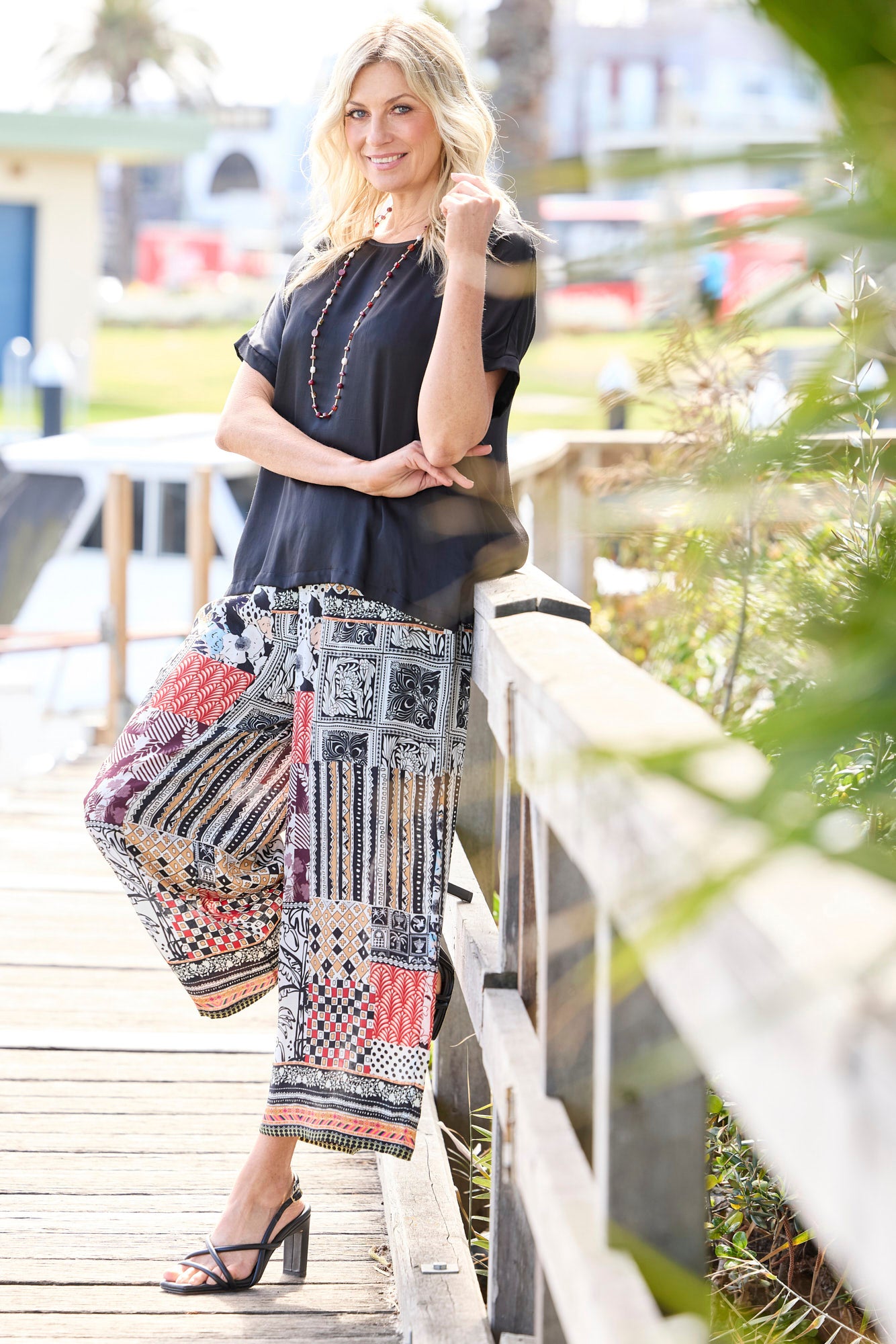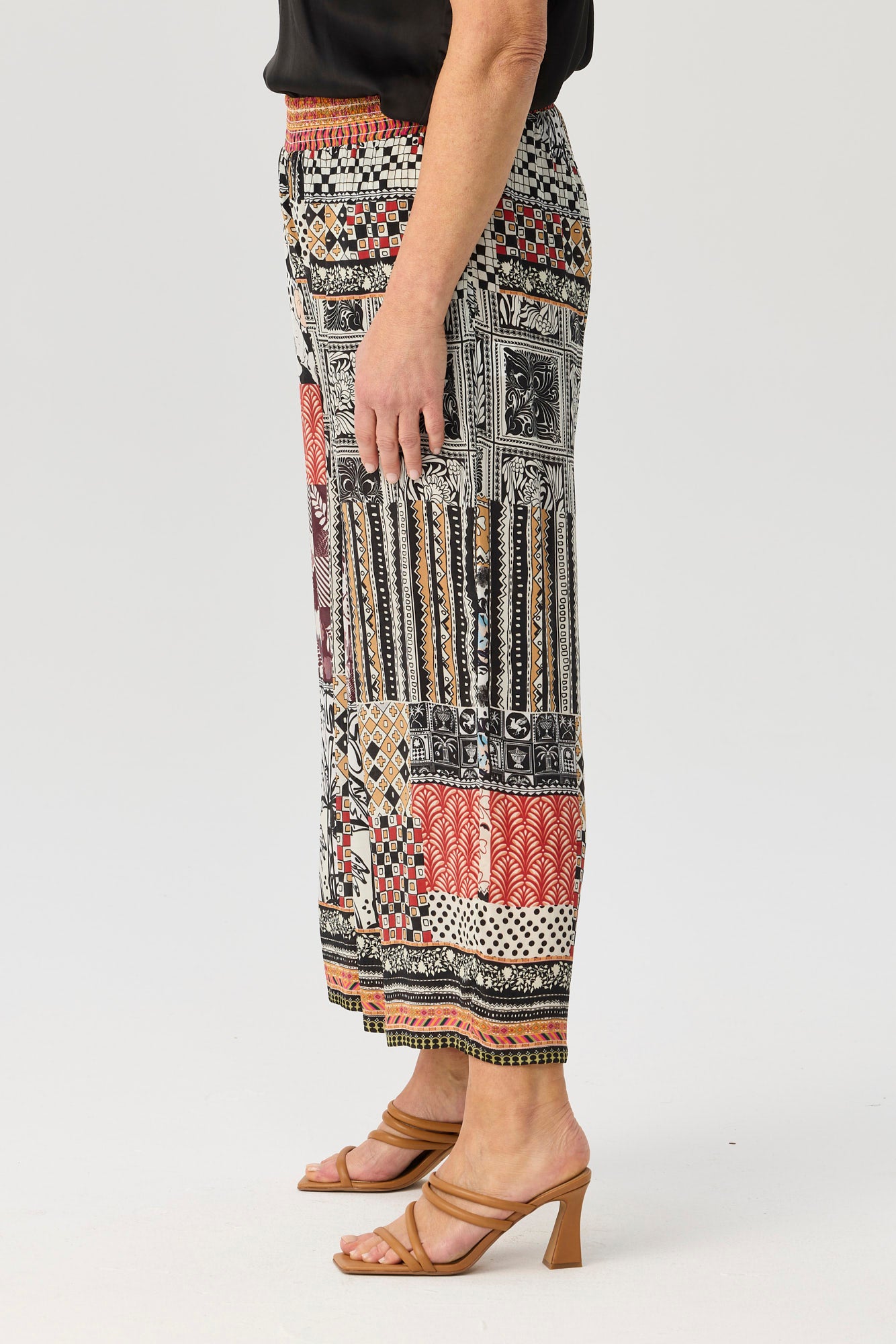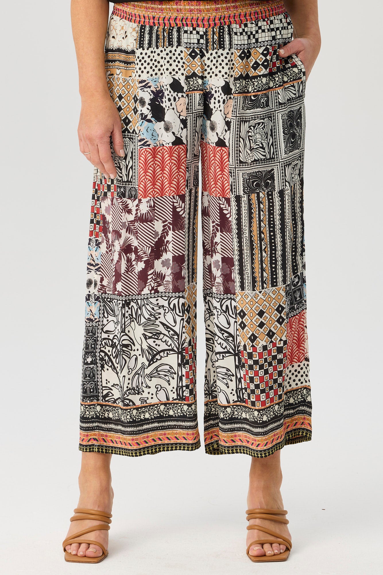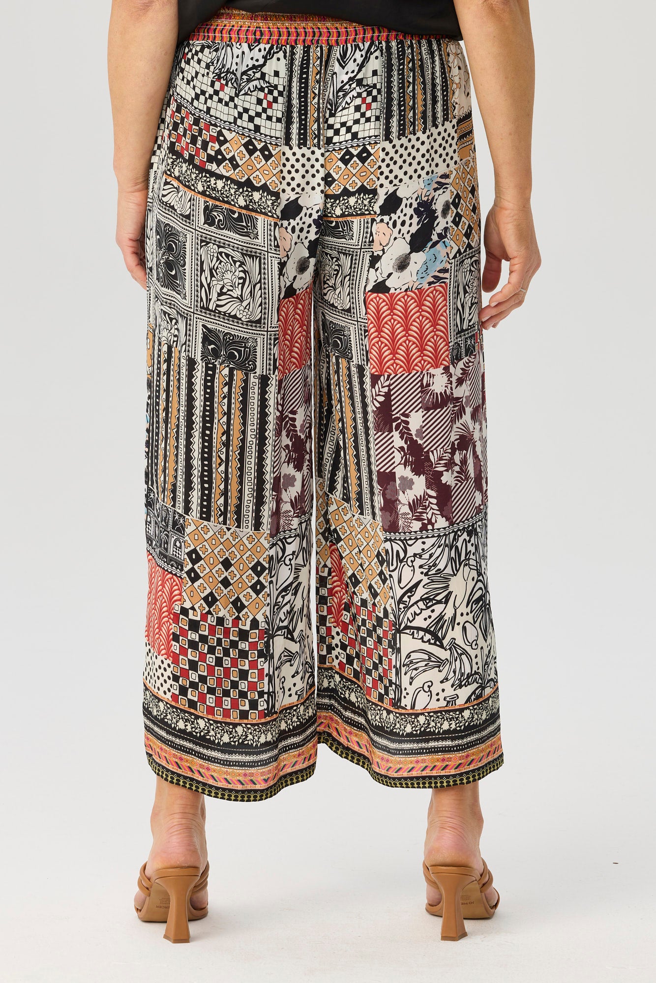 Bring vibrant energy to your look with the Blackjack 7/8 Pull On Pant in Red/Black. Designed in a striking multi patchwork print, these pants offer bold style with a relaxed feel. The lightweight, floaty fabric moves beautifully, while the 7/8 length and pull-on waistband make them effortlessly wearable from day to night.