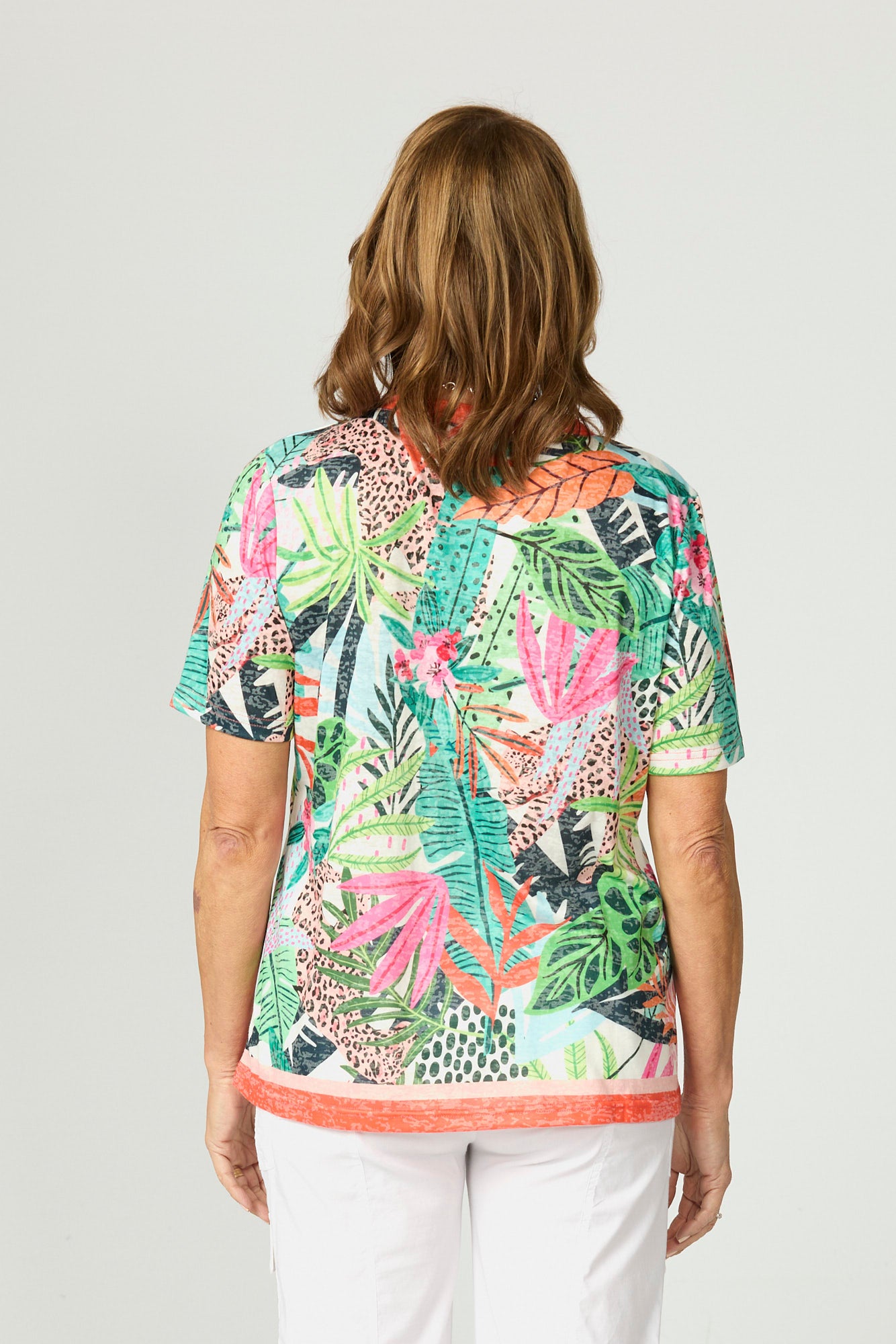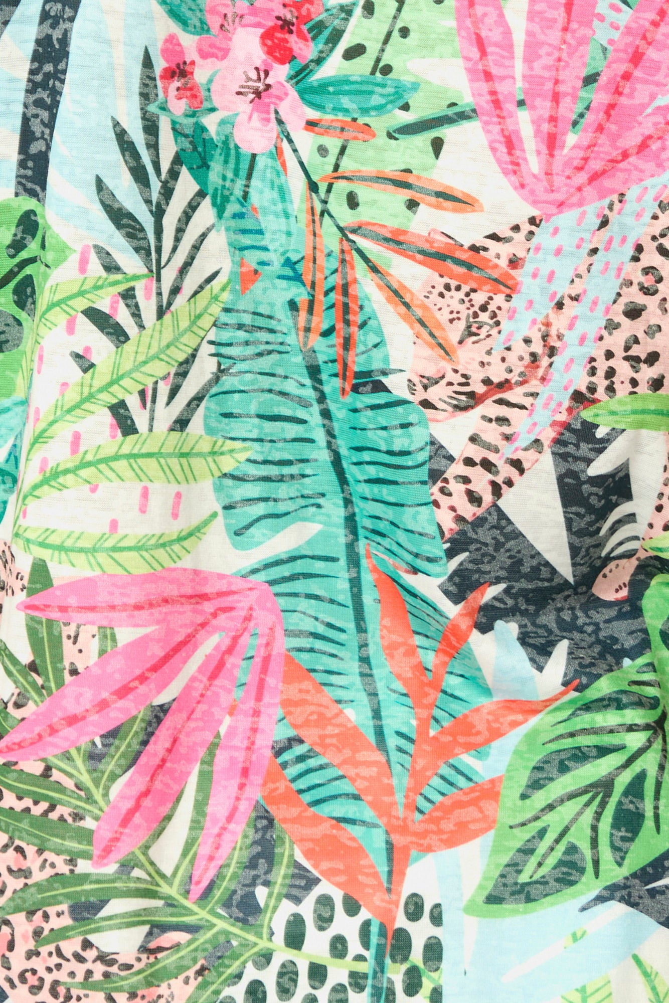 Add a splash of island charm to your wardrobe with the Bright Safari V-NK S/S Tee in Multi. Bursting with a colourful tropical print, this tee is perfect for sunny days and relaxed outings. The soft round neckline is enhanced with a stylish V insert, while short set-in sleeves and contrast neck binding complete the vibrant look with flair and comfort.