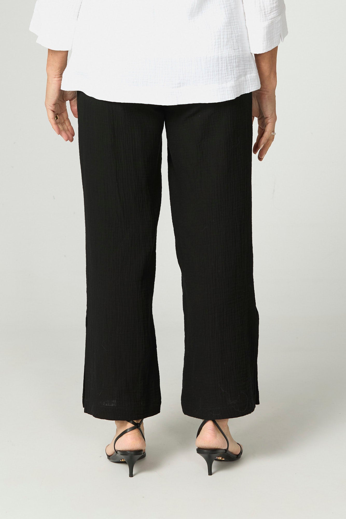 Step into everyday comfort with ease in the Bubble Long Pant with Splits in Black. Made in Australia from 100% cotton, these pants offer breathable wear with a stylish edge. Designed for movement and versatility, they feature a long leg length with side hem splits, while the elasticated waist with tie closure ensures a perfect fit every time.