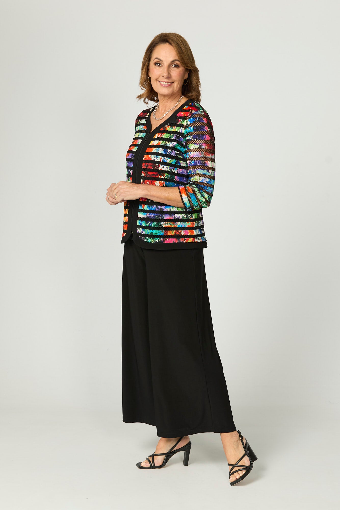 Step into effortless elegance with the Camille Zip Front Cardigan in Multi. Made in Australia, this beautifully printed piece features a delicate floral design accented by lace trim inserts. The contrast curved neckline and hem add a refined touch, while the zip front and 3/4 sleeves make it both stylish and practical.