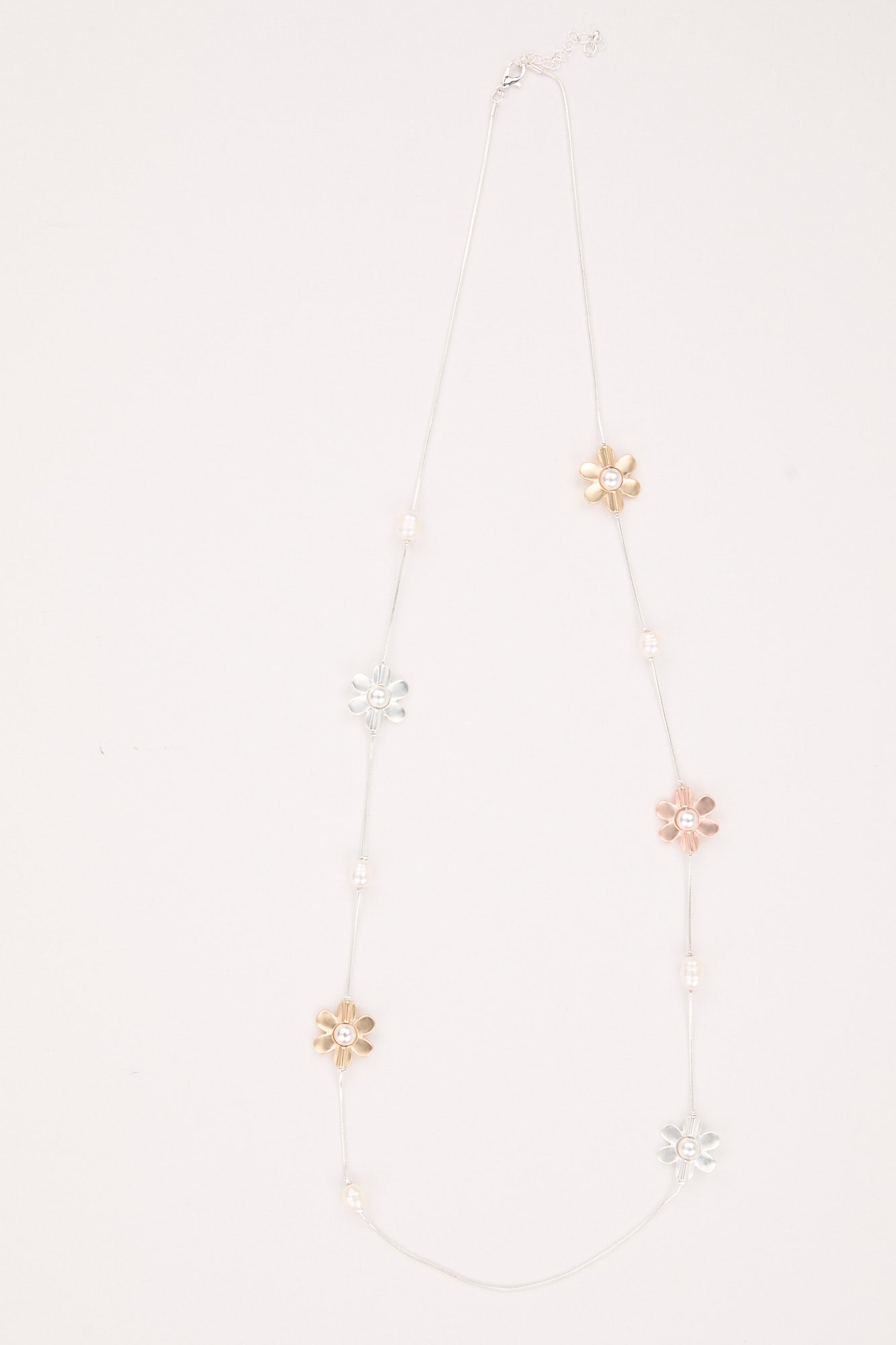 Bring a playful charm to your accessory collection with the Clara Long Necklace in Multi. Featuring delicate yellow and white floral accents interspersed with soft pearl-like beads, this lightweight piece adds a whimsical touch to any outfit. Its longline design makes it ideal for layering or wearing solo for effortless flair.