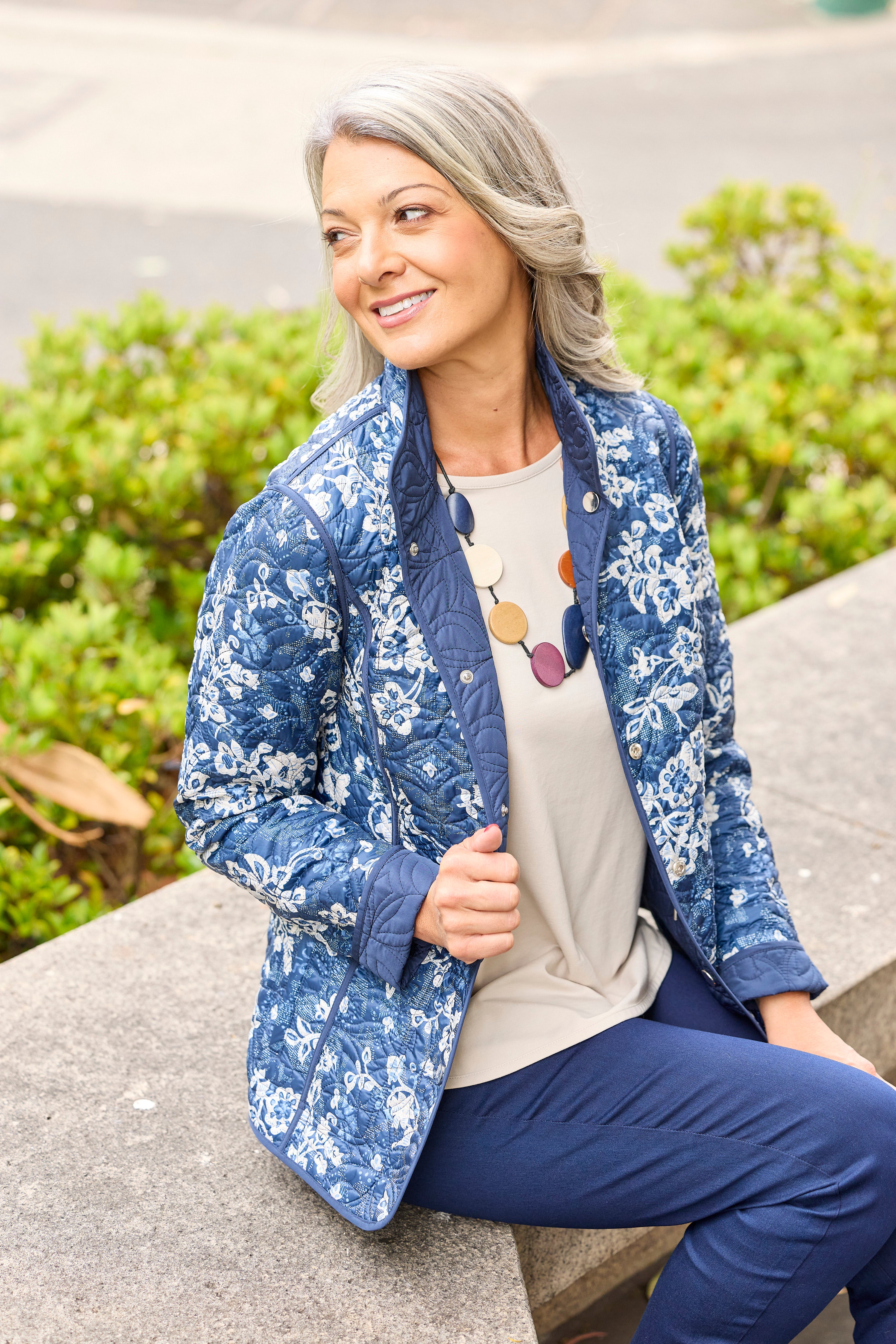 The Dante Reversible Print Jacket in Navy/Ecru Mix is a jacket that delivers all-day comfort for cooler-weather layering. A collared neckline adds a clean, structured finish and keeps the upper line neat. Long sleeves add extra coverage and make the piece useful when the weather turns cooler. The print detail adds visual interest while keeping the overall shape easy to style.