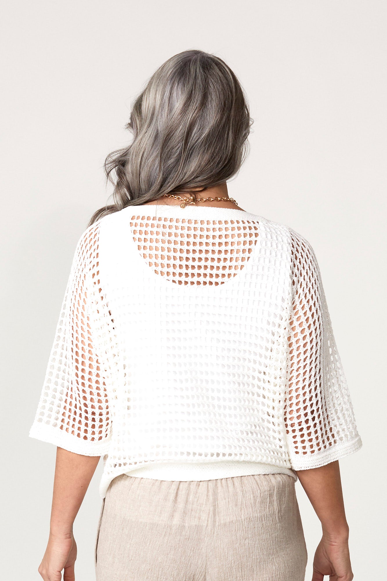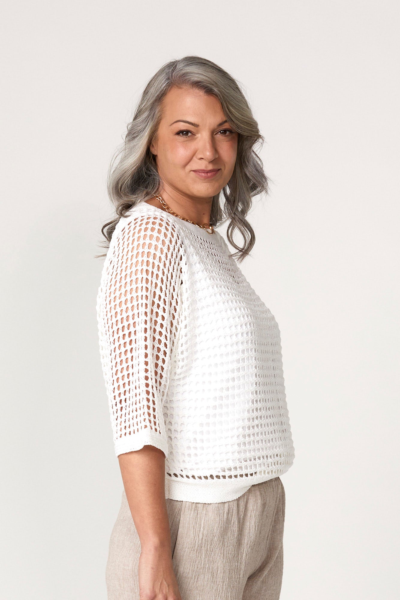 Refresh your wardrobe with the breezy sophistication of the Esperance eyelet Top in White. Featuring an all-over open texture, this relaxed silhouette brings effortless elegance to everyday dressing. The Indigo hue adds a warm, neutral charm that pairs beautifully with your favourite staples. Wear it with a co-ordinating singlet underneath or a contrast colour of your choosing. The elbow length sleeves offer a flattering fit, making it a versatile piece for both casual and dressy occasions.