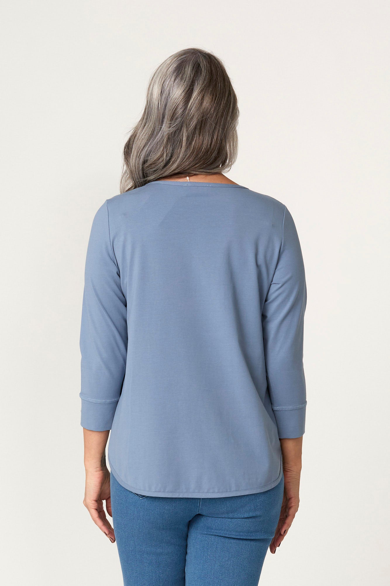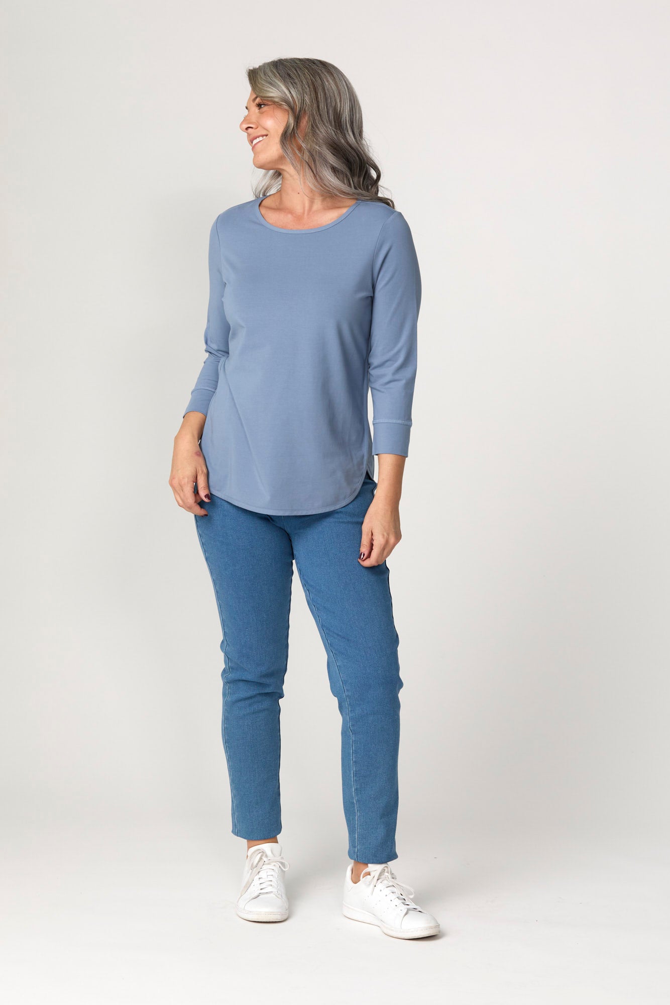 The Eternity Modal/cotton 3/4 Sleeve Top is a top that delivers easy movement and comfort for daily routines. Modal and cotton fabric keeps the top comfortable against the skin and suited to long wear without feeling heavy. The round neckline offers clean coverage at the front and keeps the upper line simple for layering. 3/4 sleeves give coverage without feeling heavy, working well when you want a lighter sleeve length.