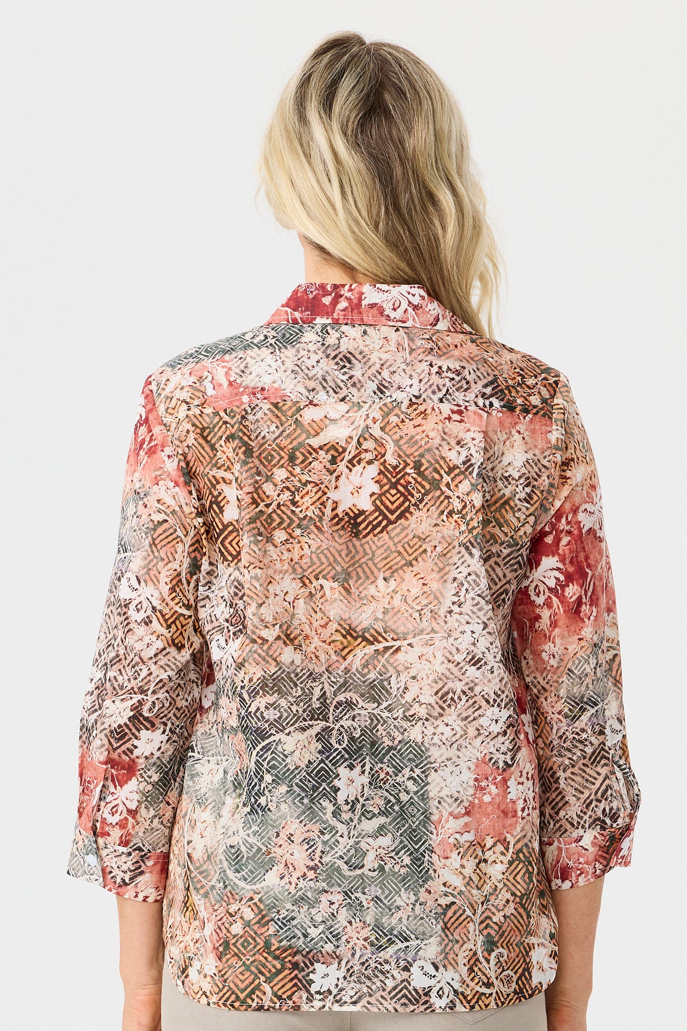 The Freda 3/4 Sleeve Collared Shirt in Olive Mix is a shirt that delivers all-day comfort for daily routines. Cotton fabric feels soft, keeping the shirt comfortable against the skin during long wear. A collared neckline adds a clean, structured finish and keeps the upper line neat. Cuffed sleeves add a neat finish and keep the sleeve line in place.