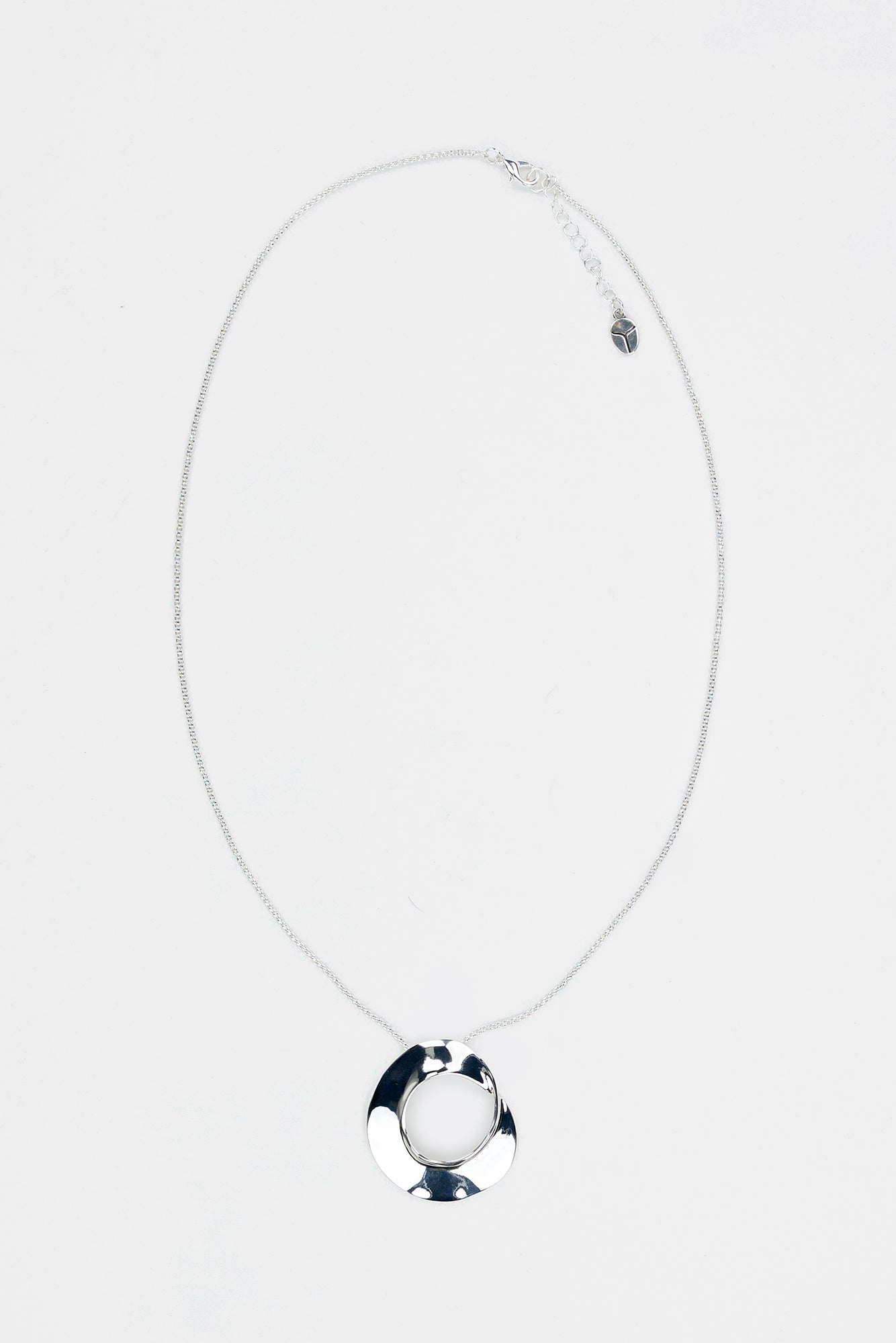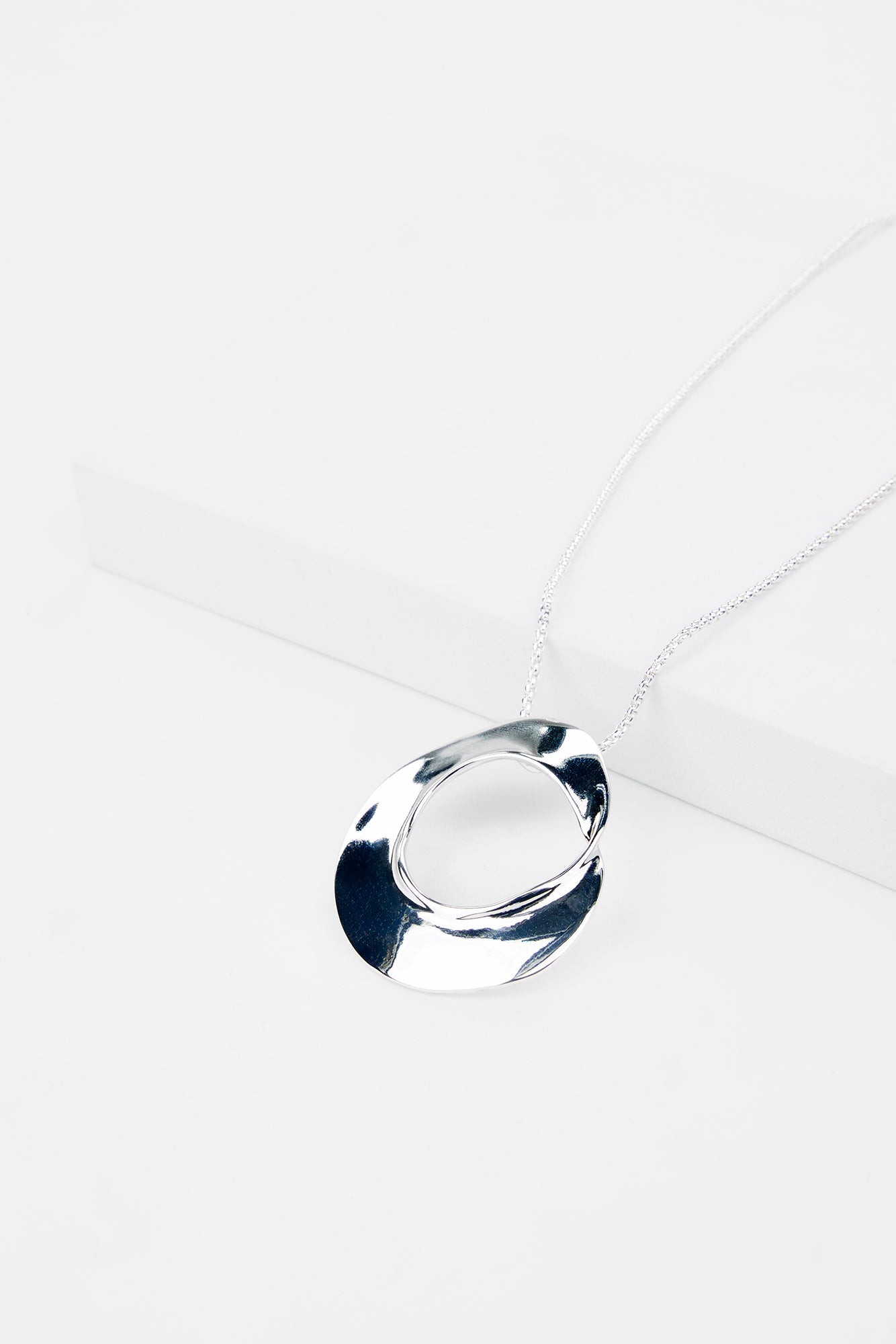 Add a touch of modern elegance with the Liora Pendant Necklace in Silver. This statement piece showcases a bold, sculptural pendant that effortlessly draws the eye. Suspended on a delicate chain, it brings a refined, artistic flair to any outfit—perfect for elevating both casual and evening looks.