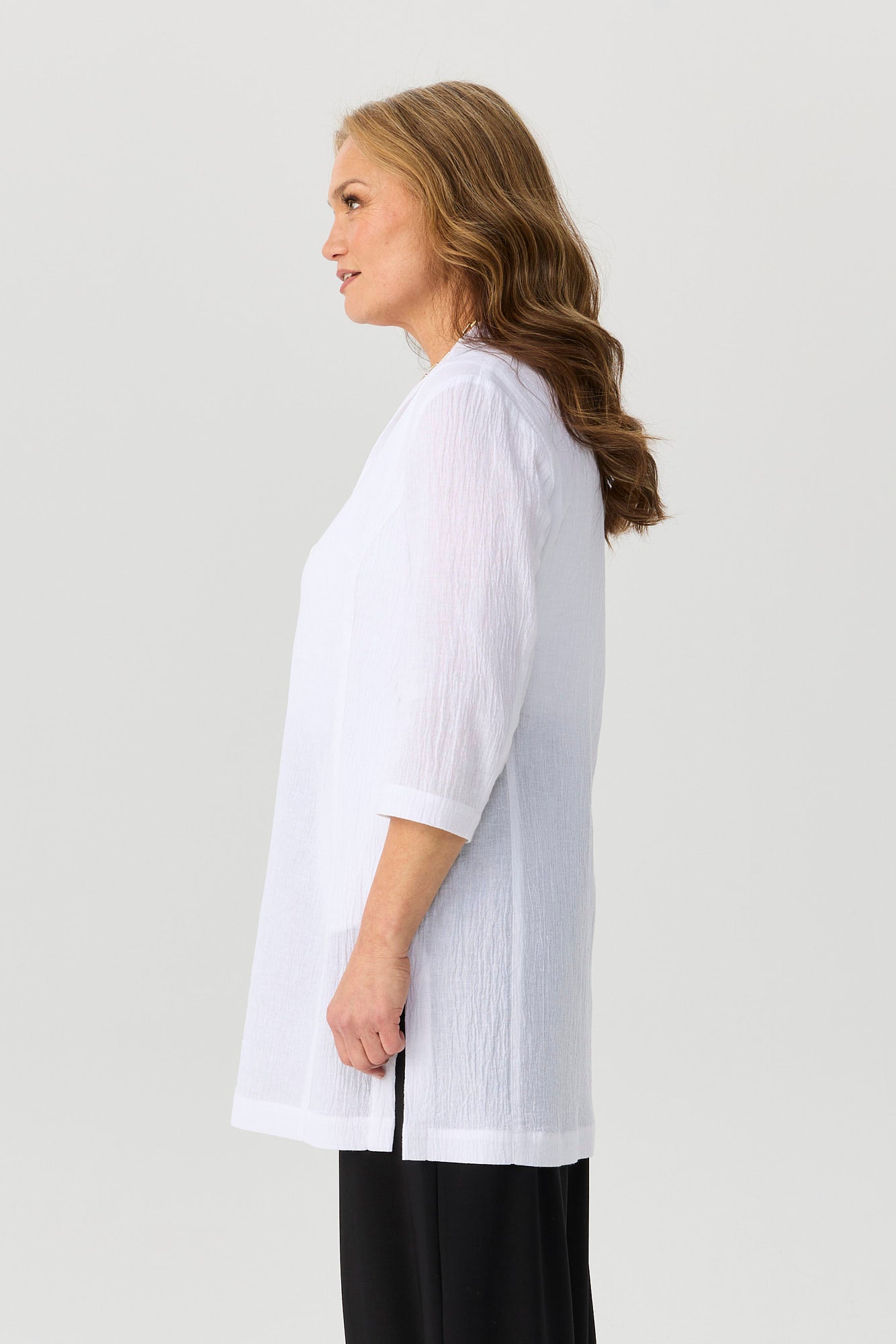 Refresh your layers with the Lumina 1 Button Long Shacket in White. Made in Australia from a breathable linen-cotton blend, this lightweight piece merges the structure of a jacket with the ease of a shirt. With a relaxed fit, front patch pockets, and a single button closure, it’s the perfect throw-on layer for effortless, everyday style.