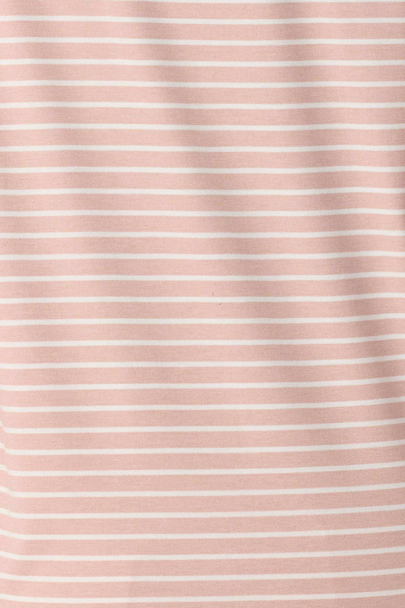 Add a touch of relaxed polish with the Pebble Stripe Short Sleeve Tee in Blush. Designed with a regular stripe pattern and modern drop shoulder sleeve, this tee brings effortless style to your everyday look. The wide contrast binding on the sleeves and neckline adds a contemporary edge, while side hem splits ensure easy movement.