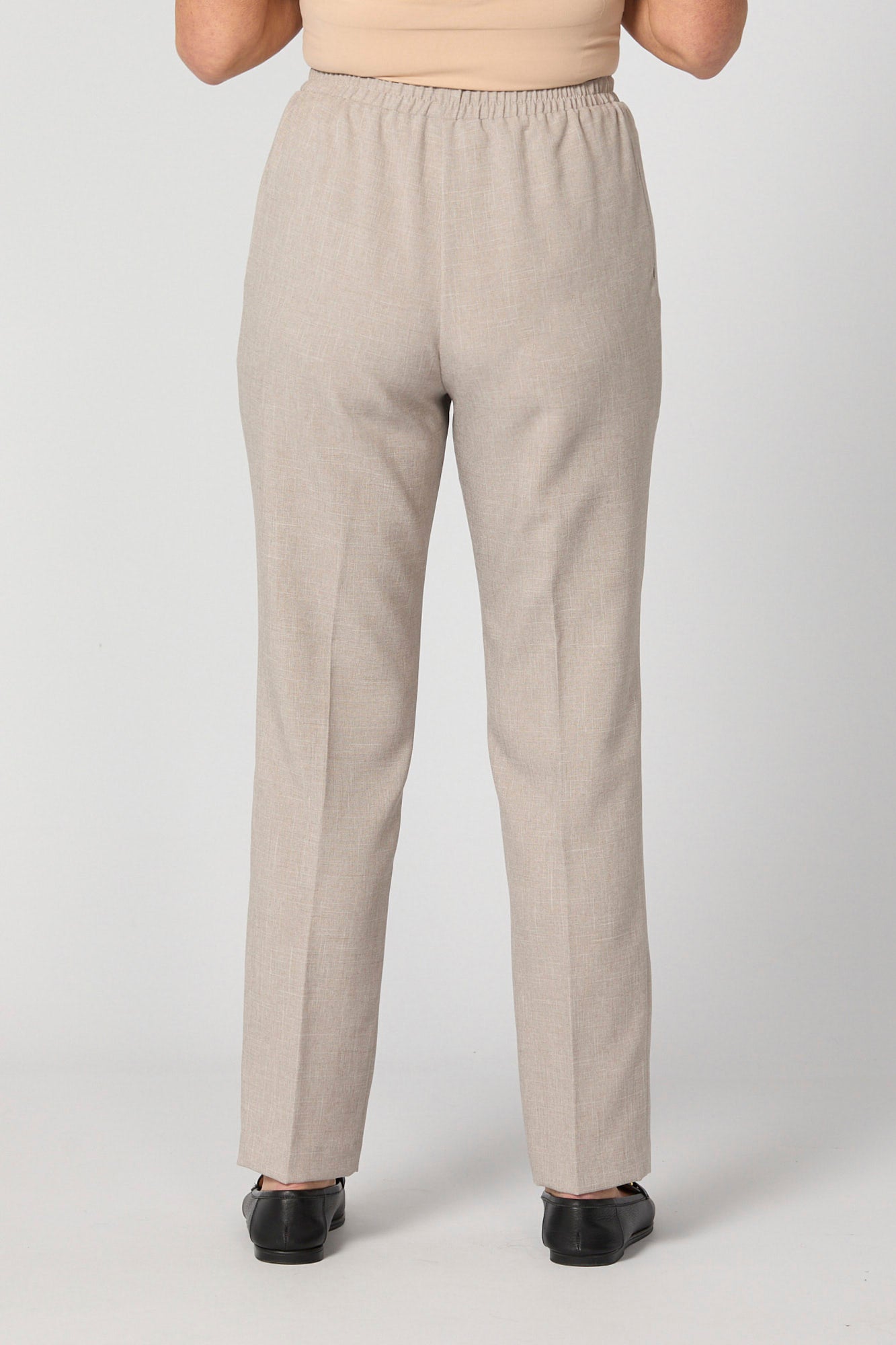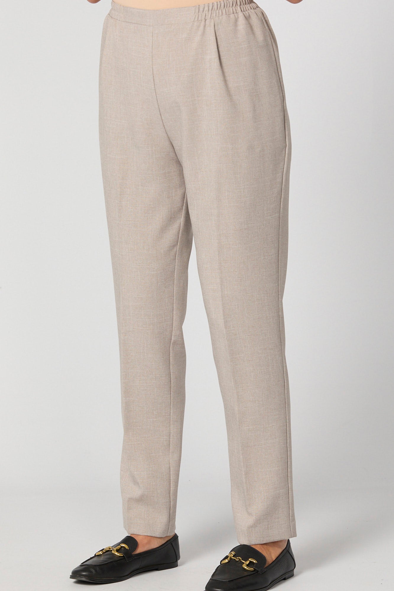 Elevate your style with our Reserve Plain Pull On Pant in Beige Marle. Crafted in Australia, these ethically accredited pants offer both comfort and elegance. The full-length design boasts a back elastic waistband, flat front waistband, and convenient side seam pockets. Experience fashion and ethics combined.