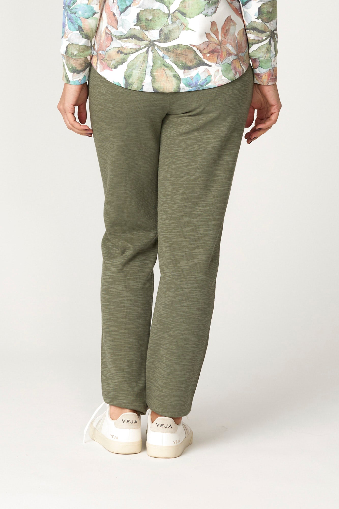 The Retreat Top Stitch Pull On Pant in Olive is a top that delivers easy movement and comfort for daily routines. The fabric feels soft, keeping the top comfortable against the skin during long wear. A tapered leg keeps the ankle line clean while maintaining ease through the upper leg. Stretch through the fabric supports easy movement and helps the fit recover after wear across everyday activity.