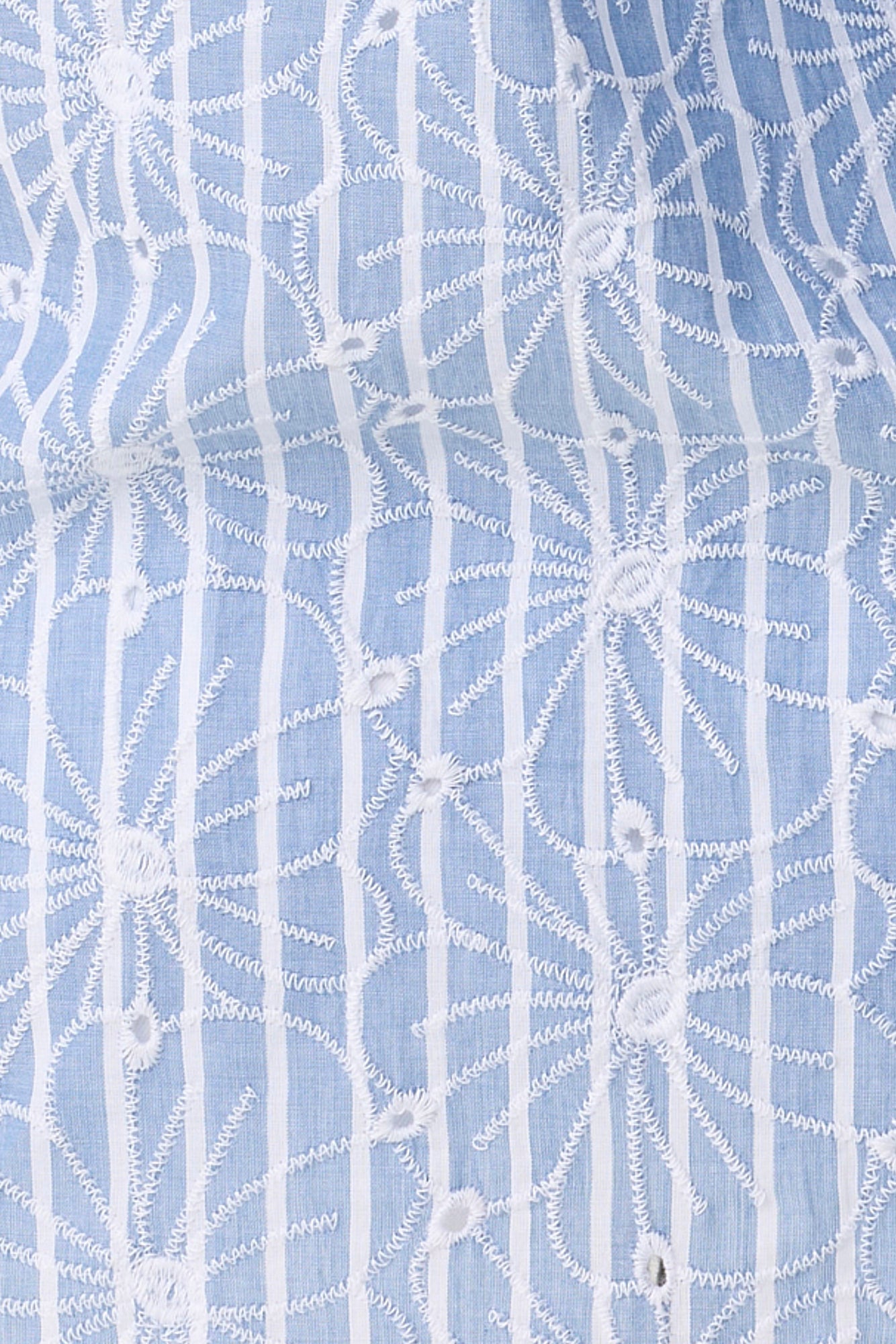 Embrace effortless elegance with the Ricamo 3/4 Sleeve Embroidered Shirt in Blue/White. Crafted from pure cotton with yarn-dyed stripes, this shirt is elevated by delicate floral embroidery and soft gathered details. Its curved hi-lo hem and relaxed silhouette make it a versatile piece with timeless appeal.