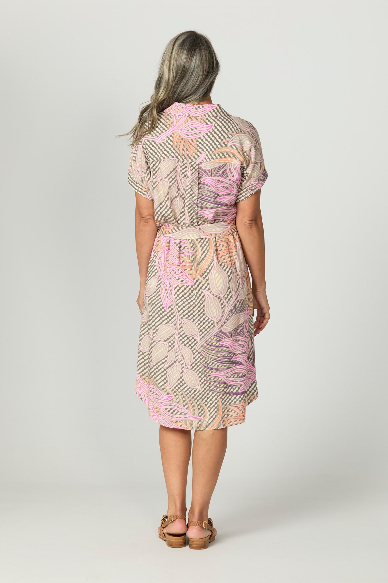 Breeze through warm days in the Summer Essence Curve Hem Dress in Multi. Made in Australia, this tonal botanical printed dress is crafted from a lightweight, flowy fabric that moves with ease. Featuring a classic shirt collar with a quarter placket, self-fabric waist ties, and a flattering curved hem, it combines comfort with understated elegance.