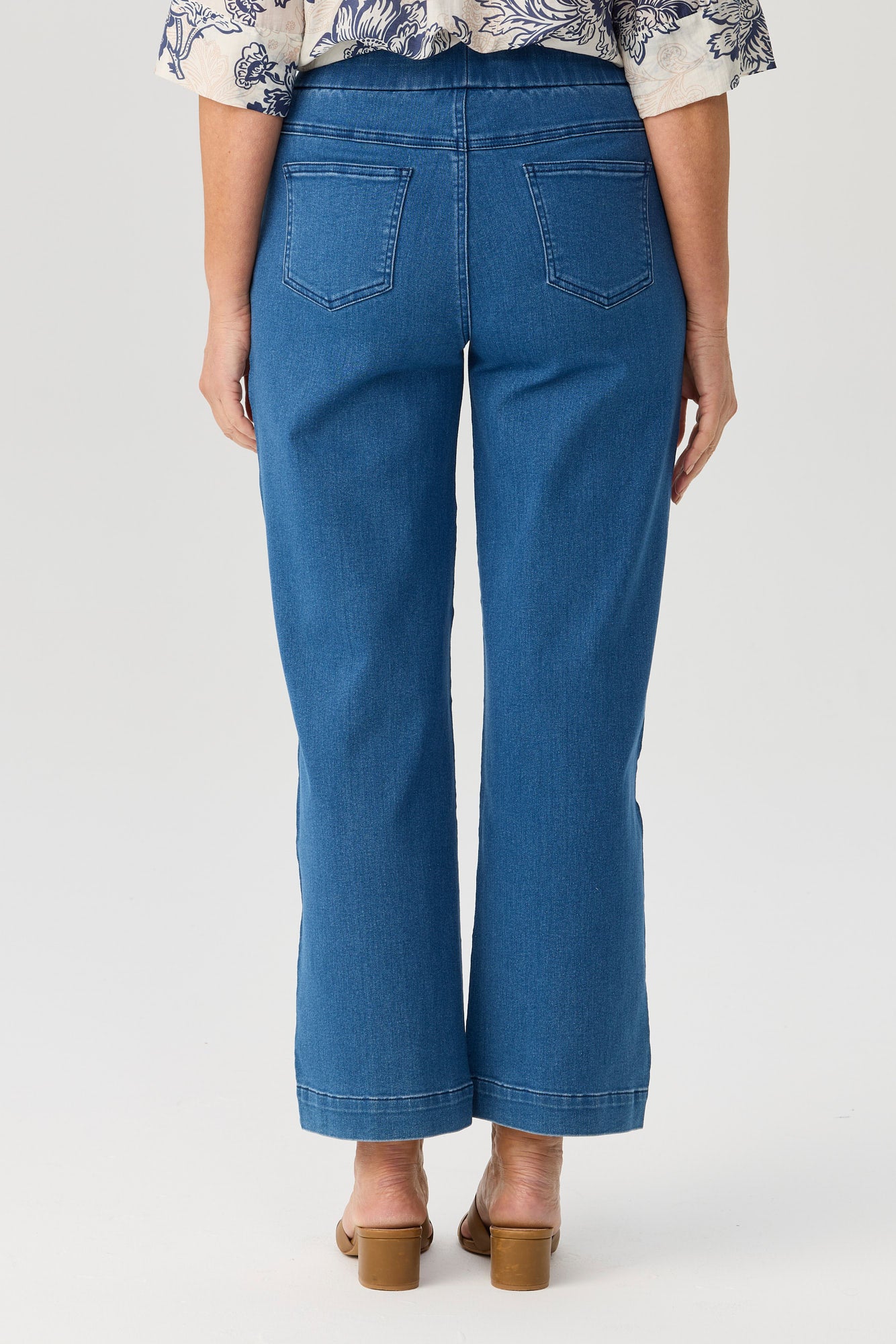 The Tilly Wide Leg Pull On Long Jean in Mid Blue are jeans that deliver all-day comfort for daily routines. A wide-leg shape adds room through the leg for easy movement and a relaxed line. An elastic waist provides pull-on ease and keeps the fit flexible without constant adjustment. Pockets keep small essentials close and reduce the need for a bag when you are on the move.